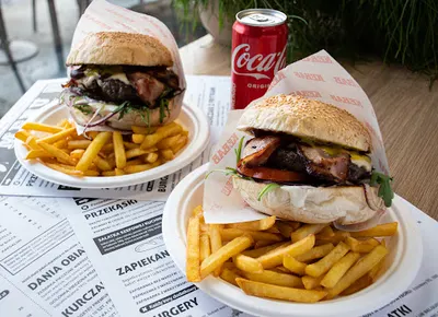 Tomcio Paluch Gastro to popularny punkt fast foodu w Białymstoku, zlokalizowany przy ul. Władysława Raginisa 5. Lokal cieszy się wysoką oceną 4,6 na 5 w Google na podstawie ponad 1750 opinii, co świadczy o uznaniu wśród klientów. Miejsce oferuje szeroki wybór dań szybkich, takich jak kebaby, zapiekanki, burgery i frytki, z opcją jedzenia na miejscu, w ogródku lub na wynos. Do atutów należy darmowy parking i czysta łazienka, co ułatwia wizytę. Klienci chwalą przede wszystkim jakość składników – mięso kraftowe, świeże warzywa i dobrze doprawione sosy, jak sweet chili czy samuraj. Zapiekanki wyróżniają się chrupiącą bułką i obfitością dodatków, a burgery wołowe czy szarpane wołowiną zdobywają uznanie za smak i porcje. Obsługa jest opisywana jako miła i pomocna, a ceny uznawane za konkurencyjne, choć niektórzy narzekają na ich wysokość w stosunku do wielkości porcji. Mimo sporadycznych uwag o małej ilości mięsa, nadmiarze warzyw czy braku listy alergenów, Tomcio Paluch Gastro pozostaje jednym z najczęściej polecanych miejsc na szybki posiłek w Białymstoku. Warto odwiedzić, by przekonać się o powodach tej popularności. (198 słów)